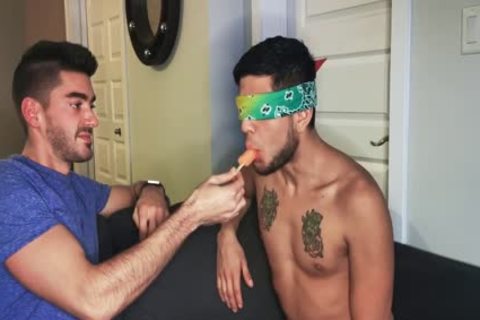 Blindfolded Roommate gets weenie To Distract Him
