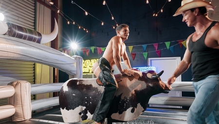 American, Ass Licking, Bar, Bareback, Cowboy, Cumshot, Dark Hair, Dogging, Kissing, Muscle, Nipples, Short Hair, Sperm, Tattoo, Toys